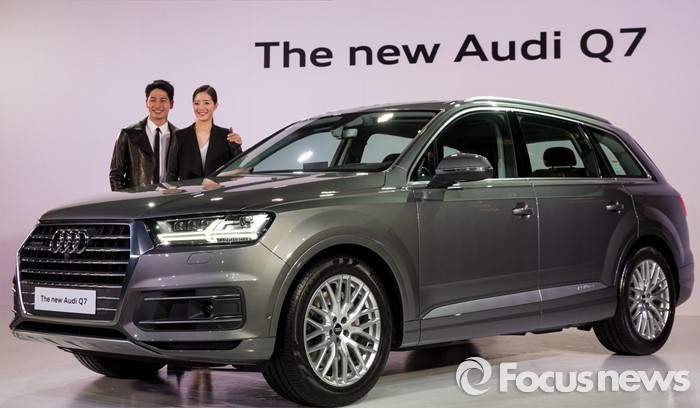 (서울=포커스뉴스) 3일 오전 서울 중구 반얀트리 클럽 앤 스파에서 모델들이 대형 SUV '더 뉴 아우디 Q7'을 선보이고 있다.