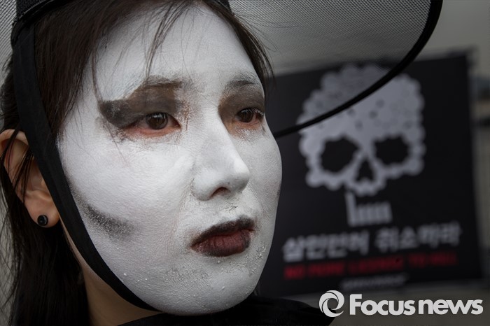 (서울=포커스뉴스) 3일 오전 서울 종로구 광화문 광장에서 그린피스 회원들이 충남지역 신규 석탄화력발전소 허가 취소를 촉구하는 퍼포먼스를 펼치고 있다.