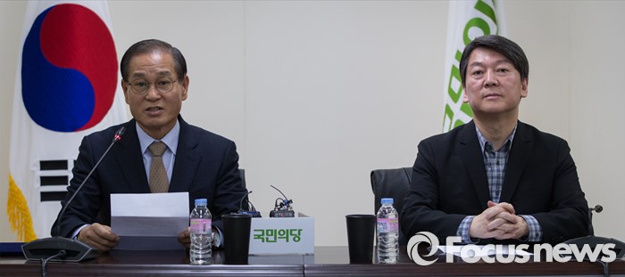 (서울=포커스뉴스) 안철수 국민의당 공동대표가 3일 오후 서울 마포구 국민의당 당사에서 열린 안보특별위원회 임명장 수여식에서 이성출(왼쪽) 위원장과 나란히 앉아 있다.
