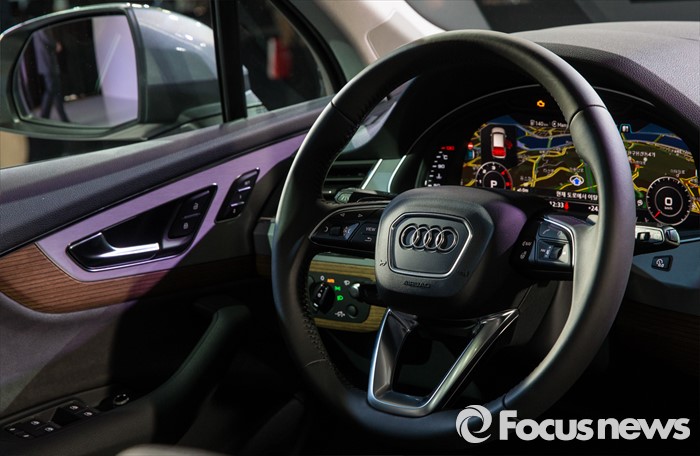 (서울=포커스뉴스) 3일 오전 서울 중구 반얀트리 클럽 앤 스파에서 아우디 코리아가 선보인 대형 SUV '더 뉴 아우디 Q7'의 헨들과 계기판.