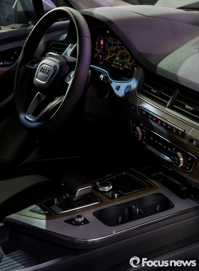 (서울=포커스뉴스) 3일 오전 서울 중구 반얀트리 클럽 앤 스파에서 아우디 코리아가 선보인 대형 SUV '더 뉴 아우디 Q7'의 실내 모습.