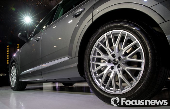 (서울=포커스뉴스) 3일 오전 서울 중구 반얀트리 클럽 앤 스파에서 아우디 코리아가 선보인 대형 SUV '더 뉴 아우디 Q7'의 휠.