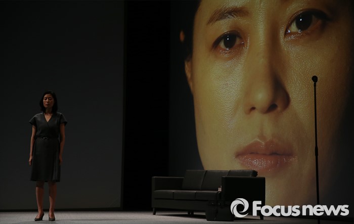 (서울=포커스뉴스) 3일 오후 서울 중구 명동예술극장에서 열린 연극 '빛의 제국' 프레스콜 행사에 참석한 배우 문소리가 주요장면을 시연하고 있다.
