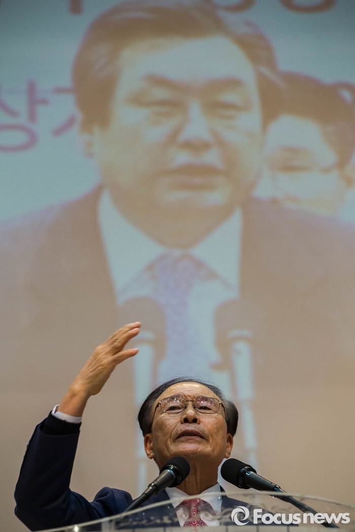 (서울=포커스뉴스) 3일 오후 서울 종로 한국기독교100주년 기념관에서 열린 기독자유당 창당대회에 참석한 한 목사가 참가자들에게 설교를 하고 있다.
