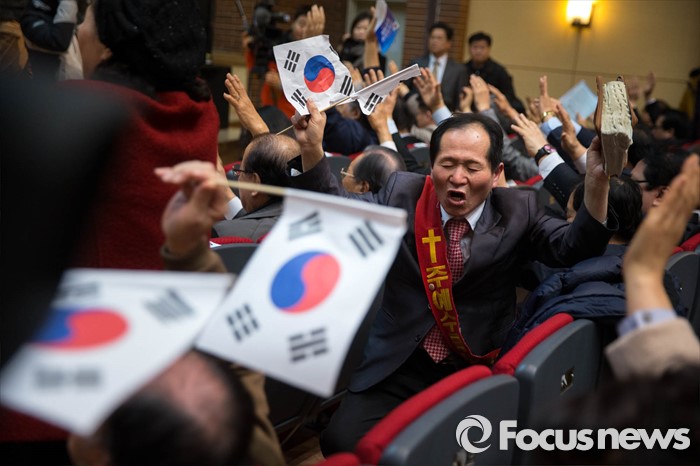 (서울=포커스뉴스) 3일 오후 서울 종로 한국기독교100주년 기념관에서 열린 기독자유당 창당대회에서 참가자들이 기도를 하고 있다.
