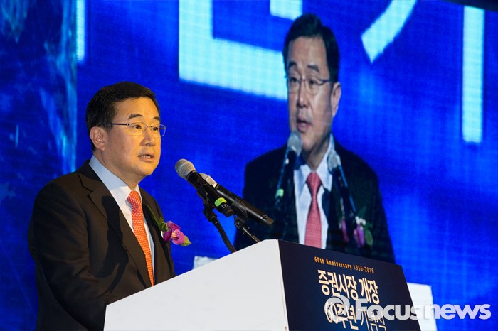 (서울=포커스뉴스) 김정훈 새누리당 정책위원장 의장이 3일 오후 서울 영등포구 63빌딩에서 열린 증권시장 개장 60주년 기념식에서 축사를 하고 있다. 이번 행사는 지난 1956년 3월 3일 대한증권거래소의 출범과 함께 문을 연 한국 증시의 60년 발자취를 기념하기 위해 마련됐다.