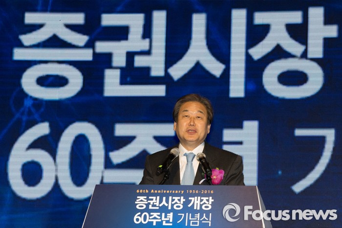 (서울=포커스뉴스) 김무성 새누리당 대표가 3일 오후 서울 영등포구 63빌딩에서 열린 증권시장 개장 60주년 기념식에서 축사를 하고 있다. 이번 행사는 지난 1956년 3월 3일 대한증권거래소의 출범과 함께 문을 연 한국 증시의 60년 발자취를 기념하기 위해 마련됐다.