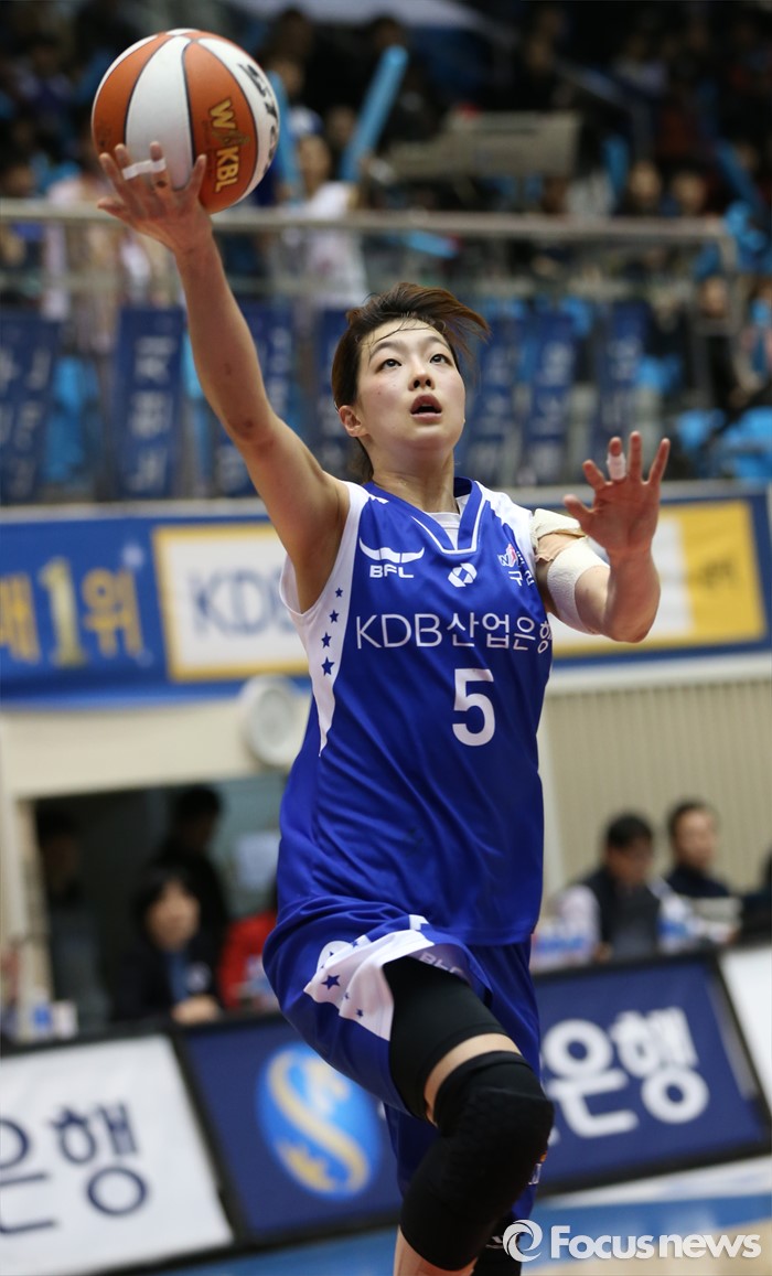 (구리=포커스뉴스) 3일 구리시체육관에서 열린 2015~2016 여자프로농구 KDB생명- KEB하나 경기에서 KDB생명 이경은이 레이업슛을 쏘고 있다.