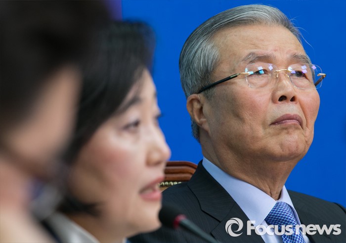 (서울=포커스뉴스) 김종인(오른쪽) 더불어민주당 비대위 대표가 4일 오전 서울 여의도 국회에서 열린 비대위-선대위 연석회의에 참석해 박영선 비대위원의 발언을 듣고 있다.