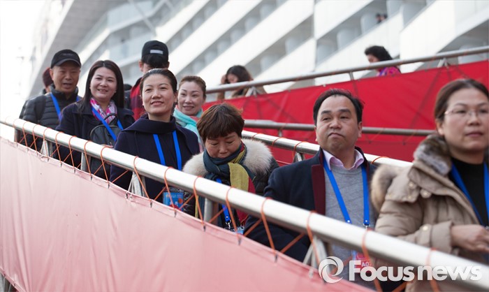 (인천=포커스뉴스) 4일 오전 인천 연수구 송도신항에 정박해 있는 아시아 최대 크루즈인 '퀀텀 오브 더 시즈'호에서 관광객들이 내리고 있다.