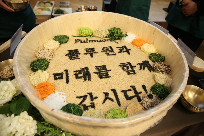 이어 "협력기업 여러분의 사랑과 성원에 보답하기 위해 올해도 동반성장과 상생협력을 위해 더욱 노력해 나갈 것"이라며 "협력기업 여러분도 매출 2조원 시대를 맞는 풀무원이 한국을 넘어 세계 속의 글로벌 로하스기업으로 도약할 수 있도록 변함없이 성원하고 도와주시기를 부탁한다"고 당부했다.'2015 풀무원 베스트 파트너스 데이'에서남승우 총괄 CEO와 이효율 대표, 풀무원 각 사업부문 대표들이 직접 100인분의 대형 비빔밥을 만들어 협력기업 임직원들과 나눠 먹으며 동반성장에 대한 실천 의지를 다시 한번 다짐하는 자리를 가졌다.<사진제공=풀무원>