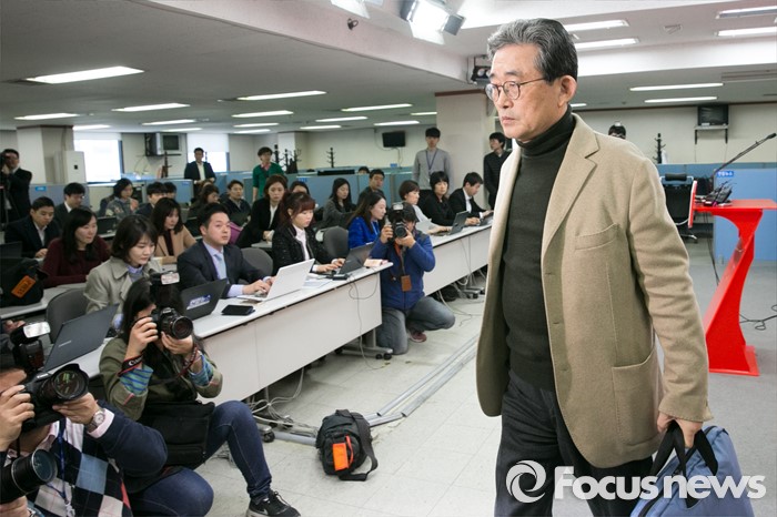 (서울=포커스뉴스) 이한구 새누리당 공천관리위원장이 4일 오전 서울 여의도 새누리 당사에서 당내 지역 예비후보 여론조사 문건 유출과 관련, 브리핑을 마친 뒤, 단상을 내려가고 있다.