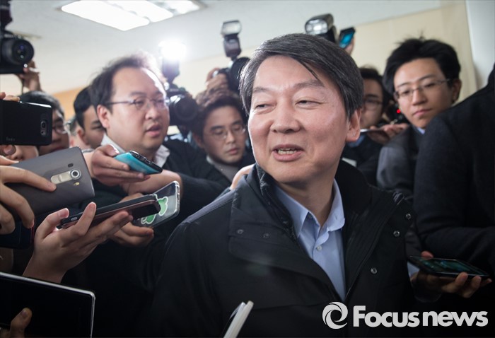 (서울=포커스뉴스) 선거대책 회의 후 '젊은 행동 그룹 GO 포럼'을 마친 안철수 국민의당 상임공동대표가 4일 오전 서울 마포구 국민의당 당사에서 기자들의 질문을 받으며 당사를 빠져나가고 있다.