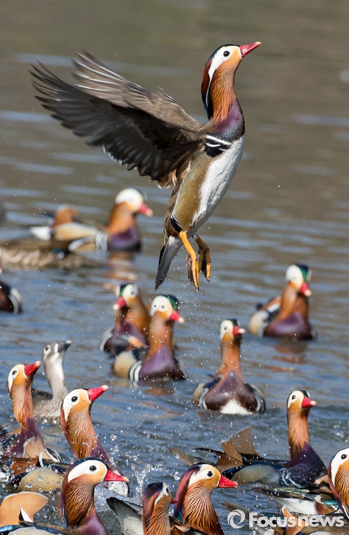 (서울=포커스뉴스) 동면하던 동물이 땅속에서 깨어난다는 경칩을 하루 앞둔 4일 오전 서울 종로구 창경궁 춘당지에서 원앙들이 봄의 기운을 알리듯 힘차게 날갯짓을 하고 있다.