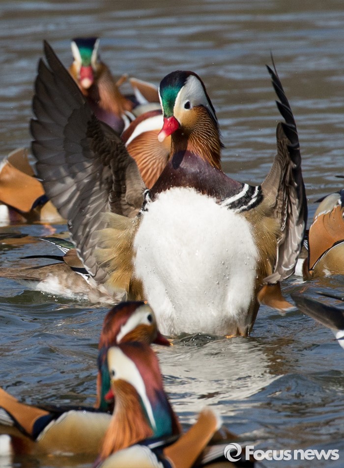 (서울=포커스뉴스) 동면하던 동물이 땅속에서 깨어난다는 경칩을 하루 앞둔 4일 오전 서울 종로구 창경궁 춘당지에서 원앙들이 봄의 기운을 알리듯 힘차게 날갯짓을 하고 있다.