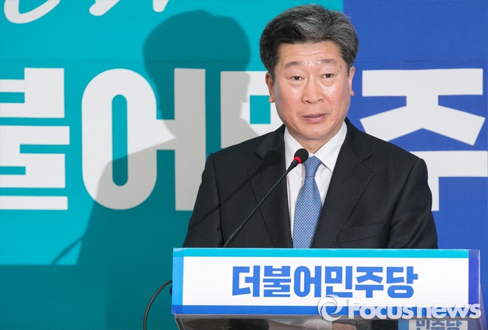 (서울=포커스뉴스) 윤종기 전 인천경찰청장이 4일 오후 서울 여의도 국회에서 열린 더불어민주당 인재영입 기자회견에 참석해 인사말을 하고 있다.