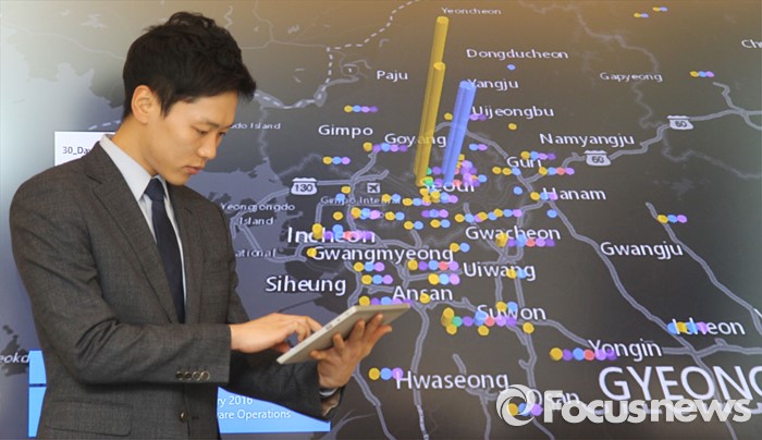 (서울=포커스뉴스) 4일 오전 서울 종로구 한국마이크로소프트에서 열린 '사이버보안센터 개관식'에서 직원들을 비롯한 관계자들이 MALWARE(악성코드) 분포도를 확인하고 있다.