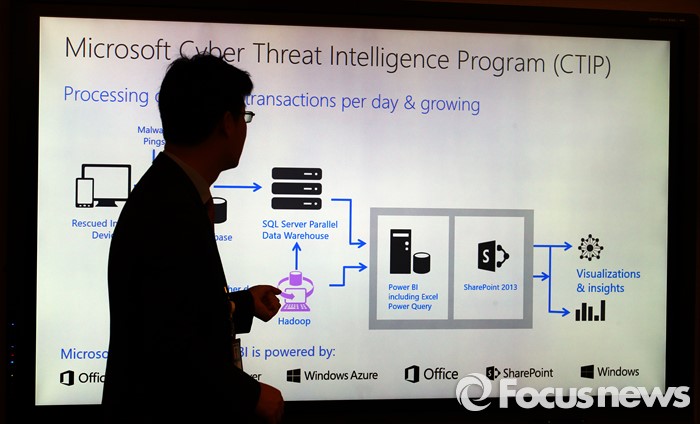 (서울=포커스뉴스) 한국마이크로소프트 사이버보안센터 오픈식이 열린 4일 오전 서울 종로구 더케이트원타워에서 관계자가 사이버센터 활동에 대한 설명을 하고 있다.