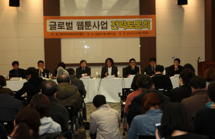한국만화영상진흥원은 지난 3일 세미나실에서 '글로벌 웹툰사업 전략토론회'를 개최했다. 이날 행사는 △한국만화영상진흥원 웹툰 글로벌 사업 소개 △한국웹툰문화산업의 해외안착을 위한 중장기 과제 △중국의 웹툰시장 분석 및 한국 웹툰의 해외진출 현황 △토론 등의 순서로 3시간에 걸쳐 진행됐다.