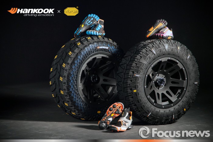 한국타이어는 메르세데스-벤츠, BMW, 아우디 등 독일 3대 명차부터 포르쉐까지 전 세계 프리미엄 완성차 브랜드에 신차용 타이어를 공급하며 파트너십을 강화하고 있다. 최근에는 아우디 TT, 포드 머스탱 등 스포츠카와 SUV 등으로 신차용 타이어 공급 영역을 확대하고 있다.오프로드용 콘셉트 타이어‘다이나 믹스(Dyna Mix)’와 ‘다이나 싱크(Dyna SYNC)’<사진제공=한국타이어>