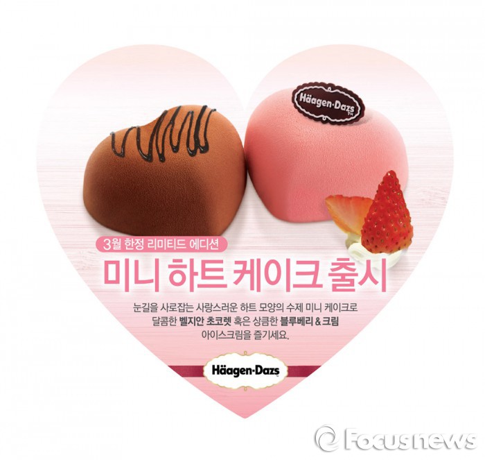 하겐다즈는 '미니 하트 케이크 세트'를 오는 5일부터 3월 말까지 전국 하겐다즈 매장에서 판매한다. 가격은 세트에 1만2000원, 포장 주문시 맛별로 개당 5500원에 제공된다.
