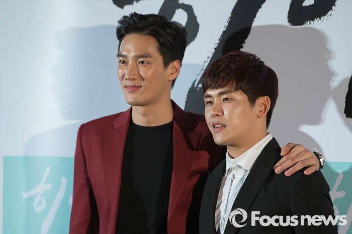 (서울=포커스뉴스) 배우 안보현과 그룹 인피니트 호야가4일 오후 서울 성동구 왕십리 CGV 에서 열린 영화 '히야' 언론시사회에 참석, 취재진을 향해 포즈를 취하고 있다.
