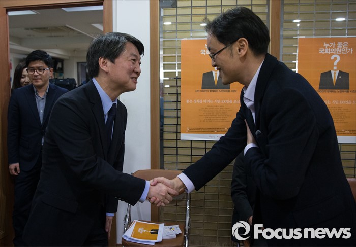 (서울=포커스뉴스) 안철수 국민의당 상임공동대표가 4일 오후 서울 종로구 희망제작소에서 열린 '노란 테이블 시민 토론회' 브리핑에 참석해 이원재 희망제작소 소장과 인사를 나누고 있다.