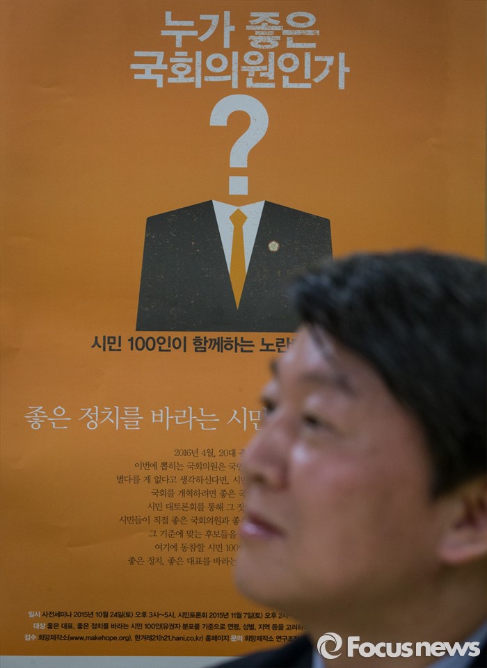 (서울=포커스뉴스) 안철수 국민의당 상임공동대표가 4일 오후 서울 종로구 희망제작소에서 열린 '노란 테이블 시민 토론회' 브리핑에 참석한 가운데 '누가 좋은 국회의원인가?'라고 적힌 포스터가 보이고 있다.