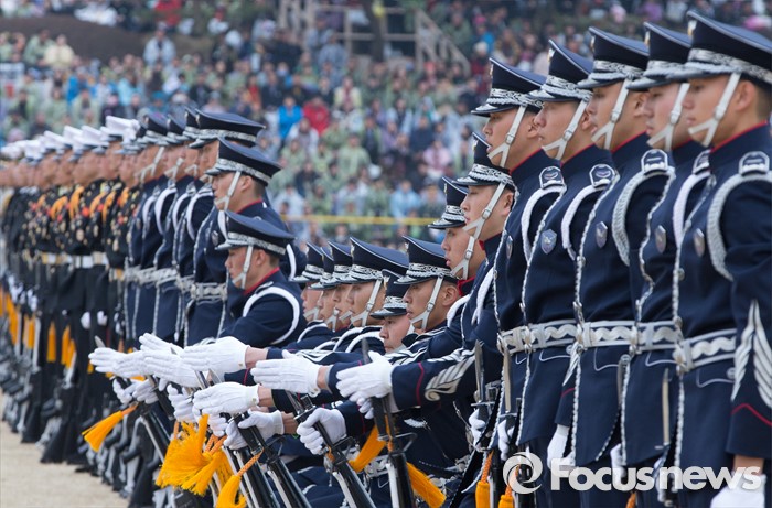 (계룡=포커스뉴스) 4일 오후 충남 계룡대 연병장에서 열린 2016년 장교 합동임관식에서 의장대가 동작시범을 보이고 있다.