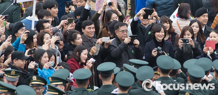 (계룡=포커스뉴스) 4일 오후 충남 계룡대 연병장에서 열린 2016년 장교 합동임관식에서 신임장교 가족들이 기념사진을 찍고 있다.