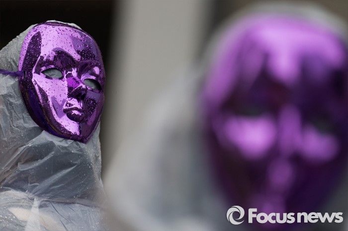 | △ '집회에 등장한 보라색 가면' |