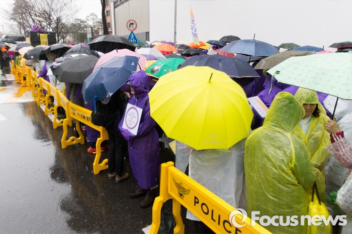 (서울=포커스뉴스) 5일 오후 세계여성의날(3월8일) 기념 제32회 한국여성대회를 마친 참가자들이 서울 종로구 일본대사관 앞에서 여성 권익 향상과 양성평등을 촉구하는 집회를 하고 있다.