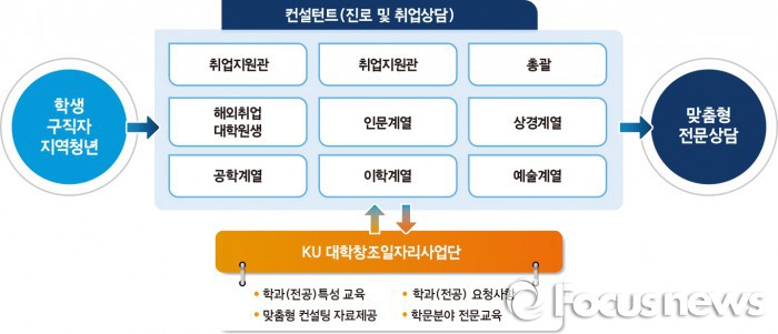 건국대 KU대학창조일자리사업단 관계자는 “계열별 전문 취업컨설턴트 제도를 바탕으로 개별학생의 전공과 관련한 맞춤형 상담이 가능할 것”이라며 “기존에 진행됐던 상담의 양·질적 개선을 통해 학생들의 취업이나 창업에서 원하는 결과를 얻을 수 있기를 기대한다”고 말했다.<그래픽제공=건국대학교>