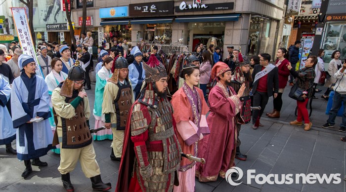 (서울=포커스뉴스) 6일 오후 서울 종로구 인사동에서 '2016 영암왕인문화축제'를 알리기 위한 '왕인박사 일본가오' 퍼레이드가 펼쳐지고 있다.