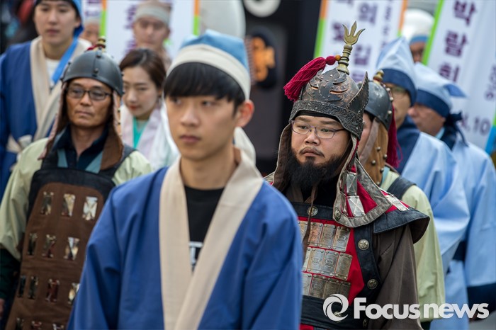 이날 영암군민들로 구성된 퍼레이드 행렬은 백제시대 학자인 왕인박사가 일본 천황의 초청으로 천자문과 논어를 들고 일본으로 건너가기 위해 상대포(上臺浦)로 향하던 모습을 재현 했다.