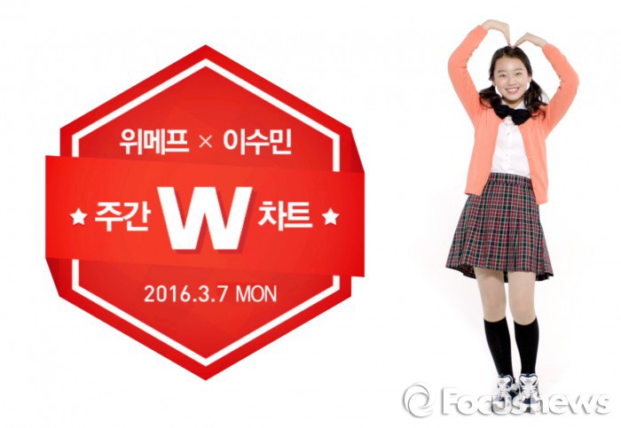 이찬우 고객마케팅본부 상무는 “주간W차트를 통해 소셜커머스라는 업의 본질에 충실한 소비자 소통과 각 주제별로 큐레이션(선정)한 제품들을 선보일 예정이다”며 “앞으로도 단순한 쇼핑뿐만 아니라 다양한 정보 제공과 소통을 강화해 소베자에게 더욱 친근하게 다가갈 수 있도록 노력할 것이다”라고 말했다.위메프는 매주 새로운 쇼핑정보와 주제별 상품을 소개하는 주간W차트를 시작하고, 이달의 진행자로 이수민을 선정했다고 7일 밝혔다.<사진제공=위메프>