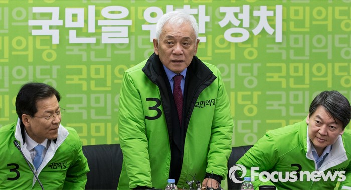 (서울=포커스뉴스) 7일 오전 서울 마포구 당사에서 열린 선거대책위원회의에 참석한 김한길(가운데) 국민의당 상임 선대위원장이 발언하고 있다.