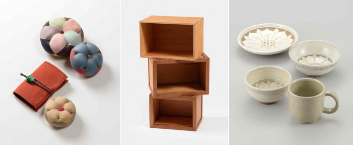 ☞사개짜임: 기둥을 쓰지 않고 판재와 판재가 서로 맞물리도록 이를 내어 끼워 맞춰 마치 손가락을 맞물린 것처럼 짜여진 부위가 노출되는 기법.국립무형유산원은 오는 4월부터 10월까지 '무형유산 시민공방'을 운영한다. 사진 왼쪽부터 누비장, 소목장, 사기장 공예품 모습.<사진제공=문화재청>