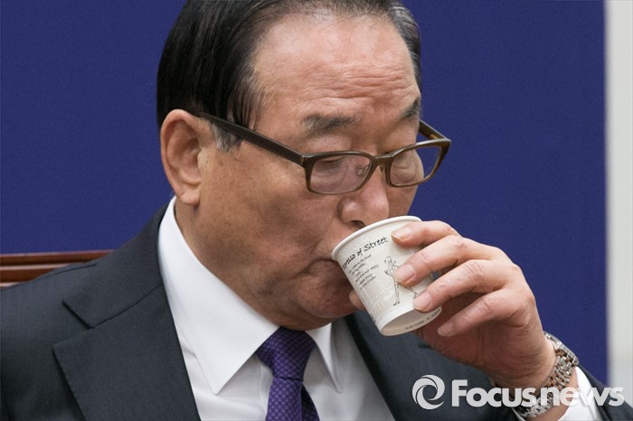 (서울=포커스뉴스) 서청원 새누리당 최고위원이 7일 오전 서울 여의도 국회에서 열린 최고위원회의에 참석해, 물을 마시고 있다.