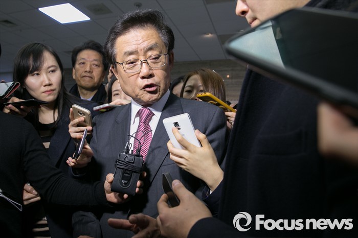 (서울=포커스뉴스) 공천 탈락 통보를 받은 김태환 새누리당 의원이 7일 오전 서울 여의도 국회에서 열린 최고위원회의에 참석한 뒤, 기자들의 질문에 답하며 밖으로 나가고 있다.