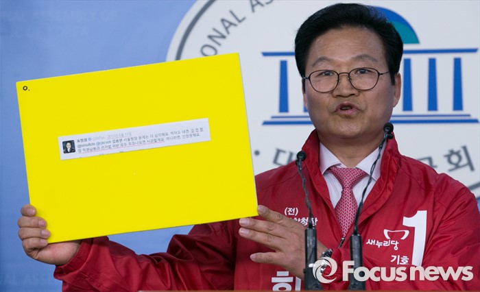 (서울=포커스뉴스) 김용판 새누리당 대구 달서을 예비후보가 7일 오전 서울 여의도 국회 정론관에서 자신을 총선 부적격자에 올린 '2016총선넷' 주장 반박, 국정원 여직원 댓글 사건으로 재판 중인 권은희 국민의당 의원 규탄, 윤재옥 의원의 음해성 행동 및 갑질 중단 등 기자회견을 하고 있다.