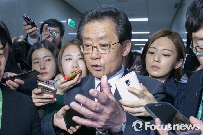 (서울=포커스뉴스) 공천 탈락 통보를 받은 김태환 새누리당 의원이 7일 오전 서울 여의도 국회에서 열린 최고위원회의에 참석한 뒤, 기자들의 질문에 답하며 밖으로 나가고 있다.
