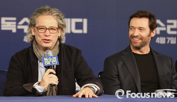 (서울=포커스뉴스) 7일 오전 서울 종로구 포시즌스 호텔 서울에서 열린 영화 '독수리 에디' 기자간담회에 참석한 영화감독 덱스터 플레처(왼쪽)가 인사말을 하고 있다.