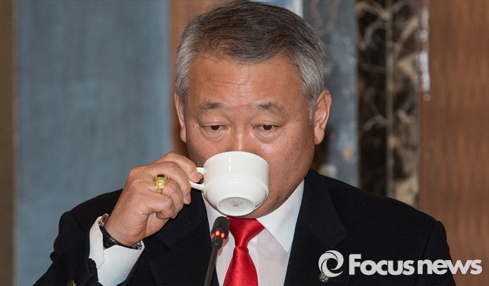 (서울=포커스뉴스) 7일 서울 중구 롯데호텔앤리조트 서울에서 열린 '대한체육회(통합체육회) 발기인 대회'에서 안양옥 체육단체 통합준비위원장이 커피를 마시고 있다.