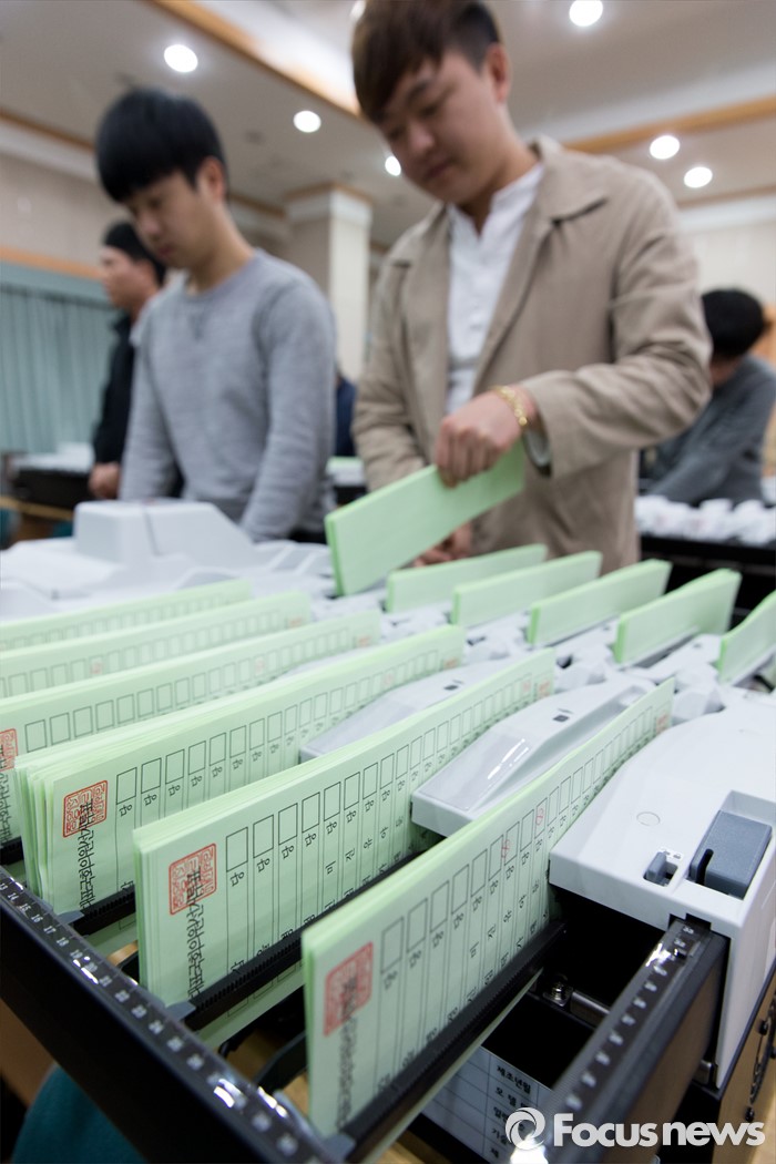 (서울=포커스뉴스) 제20대 총선을 한 달여 앞둔 7일 오후 서울 종로구 중앙선거관리위원회 선거연수원에서 투표지 분류기 담당자들이 장비점검 및 개표관리 실습교육을 하고 있다.