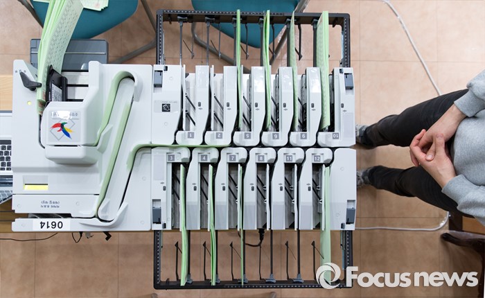 (서울=포커스뉴스) 제20대 총선을 한 달여 앞둔 7일 오후 서울 종로구 중앙선거관리위원회 선거연수원에서 투표지 분류기 담당자들이 장비점검 및 개표관리 실습교육을 하고 있다.