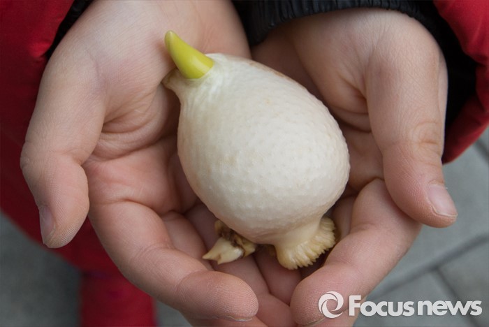 (세종=포커스뉴스) 7일 오후 세종시 정부세종청사 농림축산식품부 앞 다솜동산에서 어린이가 자신이 심을 튤립의 구근을 손에 들고 있다. 이날 농림축산식품부 이동필 장관과 직원 및 NH농협은행정부세종청사금융센터 직원들이 2500여 개의 튤립 및 백합 구근류와 팬지를 심었다.