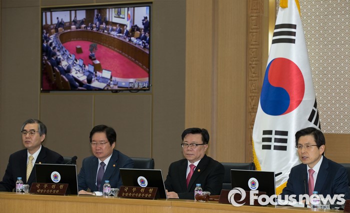 (세종=포커스뉴스) 황교안 국무총리가 8일 오전 세종시 정부세종청사 국무회의장에서 서울-세종 영상회의로 열린 국무회의에 참석해 모두발언을 하고 있다.