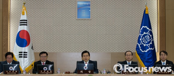 (세종=포커스뉴스) 황교안 국무총리가 8일 오전 세종시 정부세종청사 국무회의장에서 서울-세종 영상회의로 열린 국무회의에 참석해 회의를 주재하고 있다.