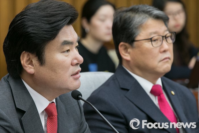 (서울=포커스뉴스) 원유철(왼쪽) 새누리당 원내대표가 8일 오전 서울 여의도 국회에서 열린 원내대책회의에 참석해 모두발언하고 있다.